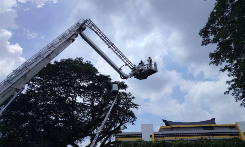 According to Assistant Director of Operations for the Perak Fire and Rescue Department (JBPM), Sabarodzi Nor Ahmad, the two male victims, aged 33 and 38, were stuck at an estimated height of 40 feet after the skylift crane malfunctioned.