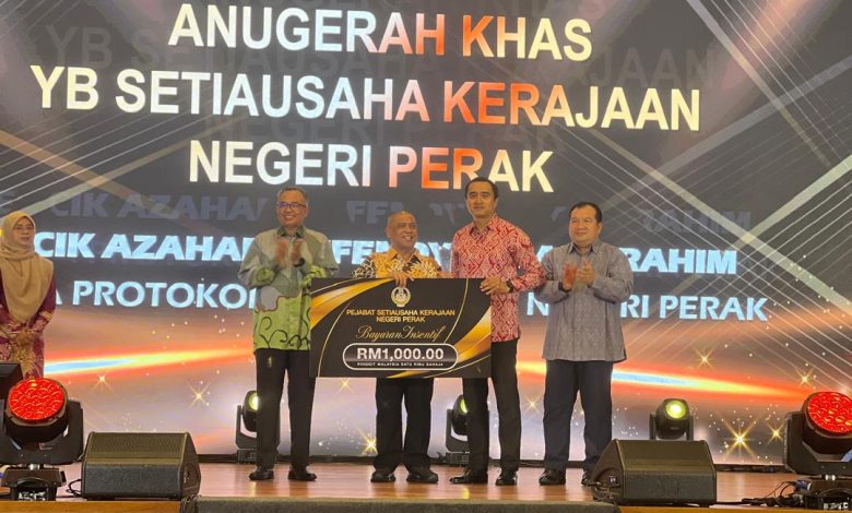 The Special Award from the Perak State Secretary was also presented to Azahari Effendy Abd Rahim, Chief of Protocol and Ceremonial Unit, who received a trophy and RM1,000 cash prize.