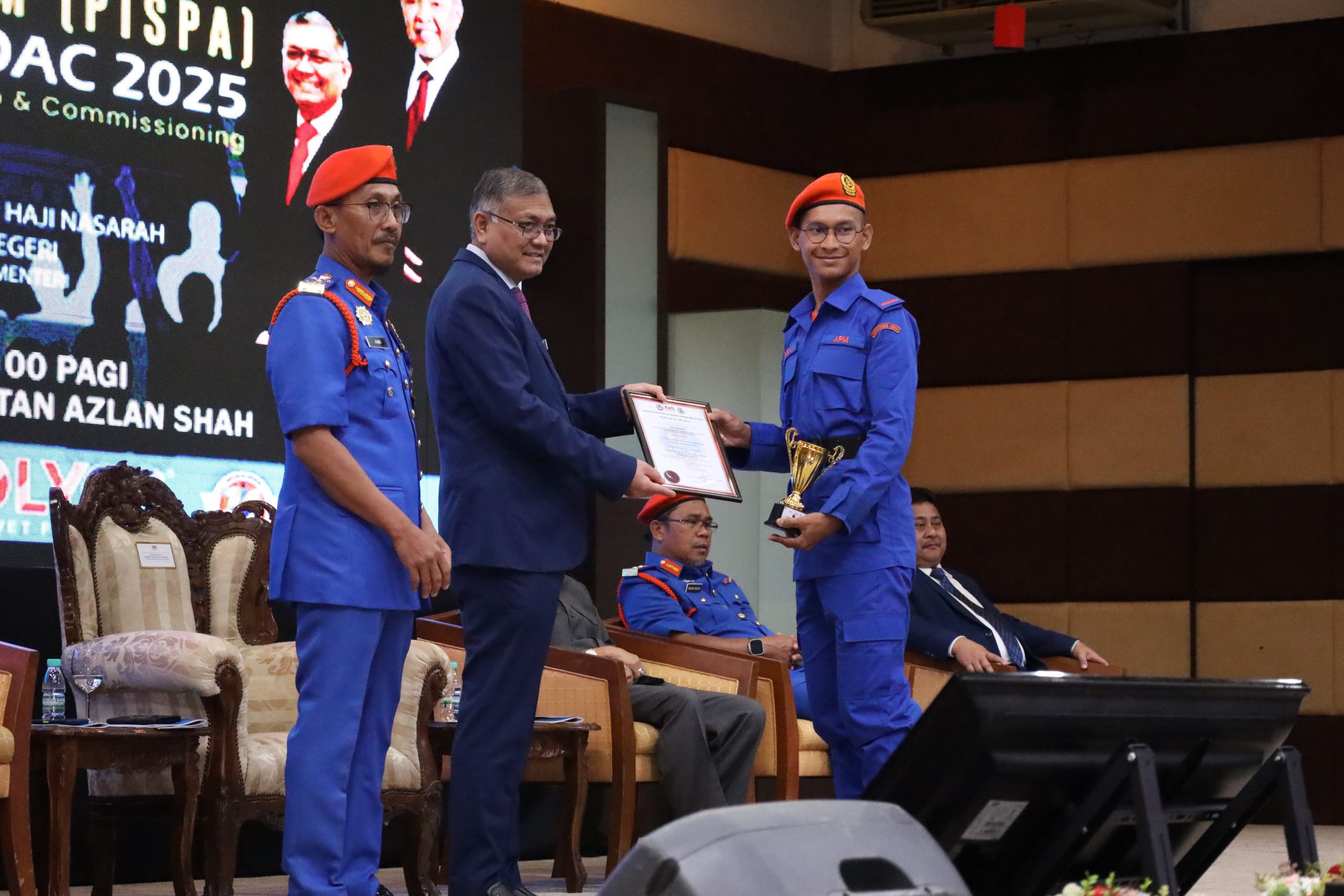 The commissioning ceremony for the Civil Defence Institutional Team (PISPA) was officiated by Deputy Minister of Home Affairs, Datuk Seri Dr Shamsul Anuar Nasarah, at Dewan Muallim, Politeknik Sultan Azlan Shah (PSAS) here today.