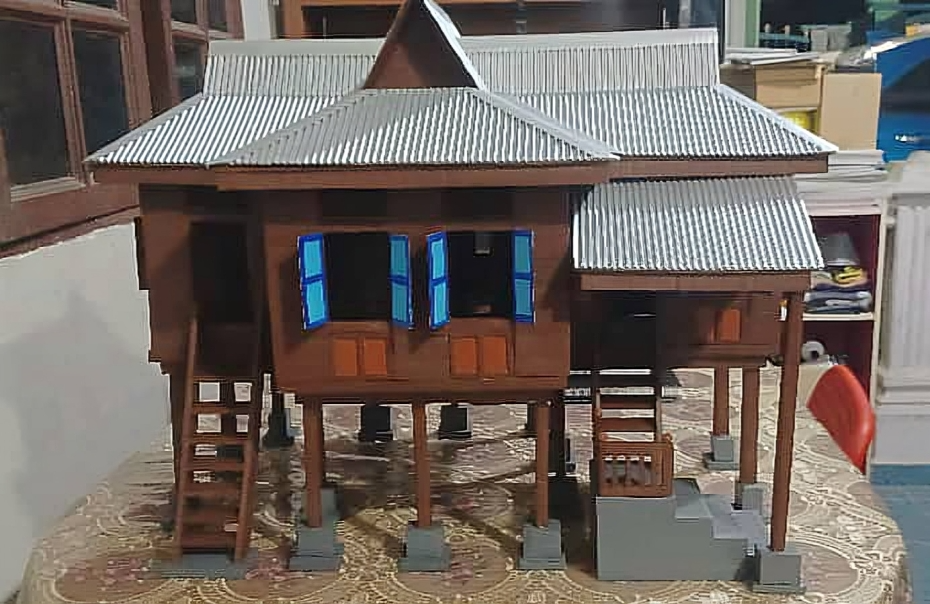 Affandi completed the entire project in just over a month. Although the supplies he had ordered arrived later than expected, once he received them, he got straight to work. He constructed the traditional kampung house using cardboard, glue, a craft knife and acrylic paint. He did it all on his own without any help.