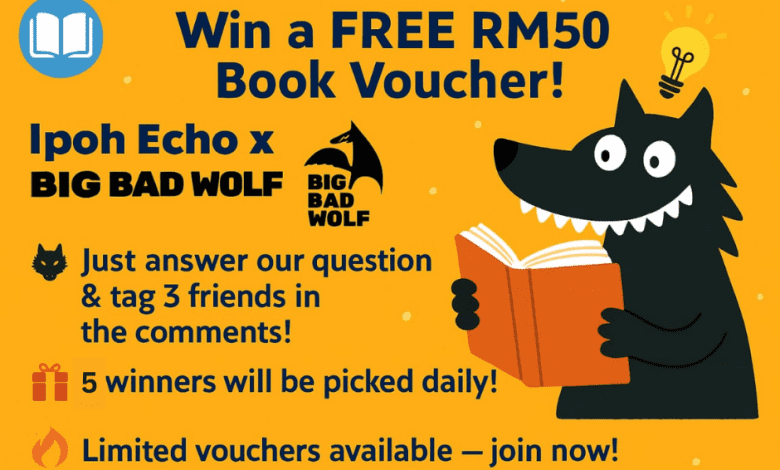 Vouchers must be redeemed by 4 July at the Big Bad Wolf Customer Service Counter inside AEON Big Falim.