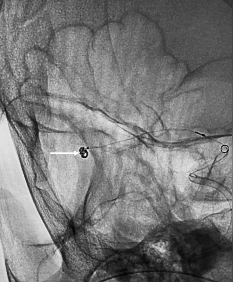 “Using a 1.7F microcatheter (with a diameter smaller than 1mm), the team carefully delivered a platinum coil 2mm in diameter and 4cm in length into the aneurysm sac.