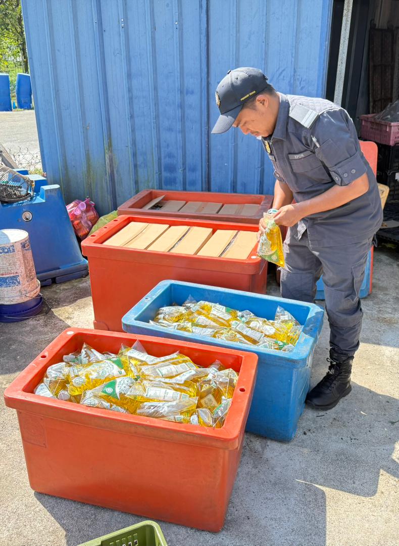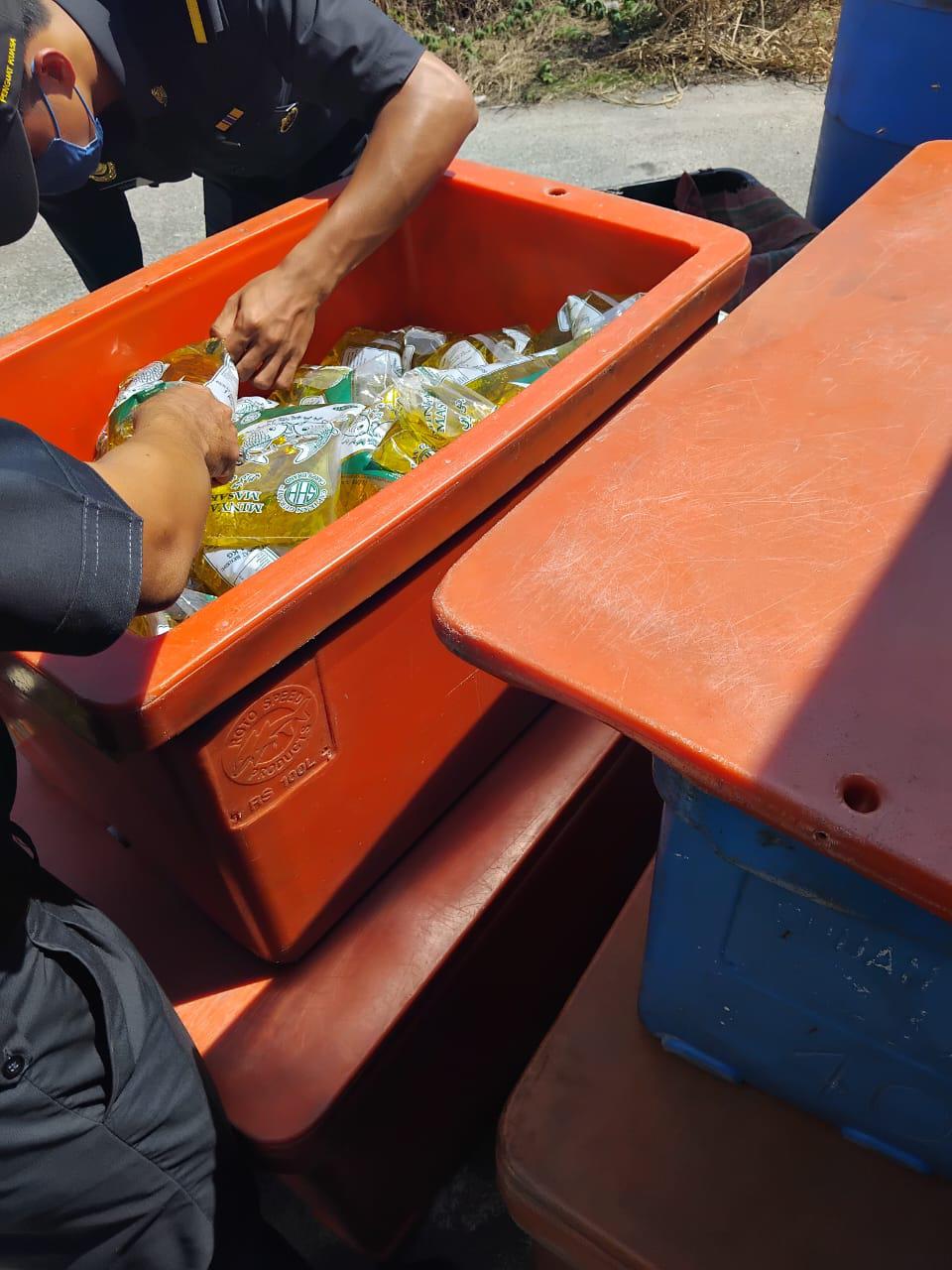 KAMUNTING: A total of 605 packets of subsidised cooking oil were seized from a premises in Lorong IKA, Industri Kamunting Aman, after authorities discovered the quantity far exceeded the licensed limit.