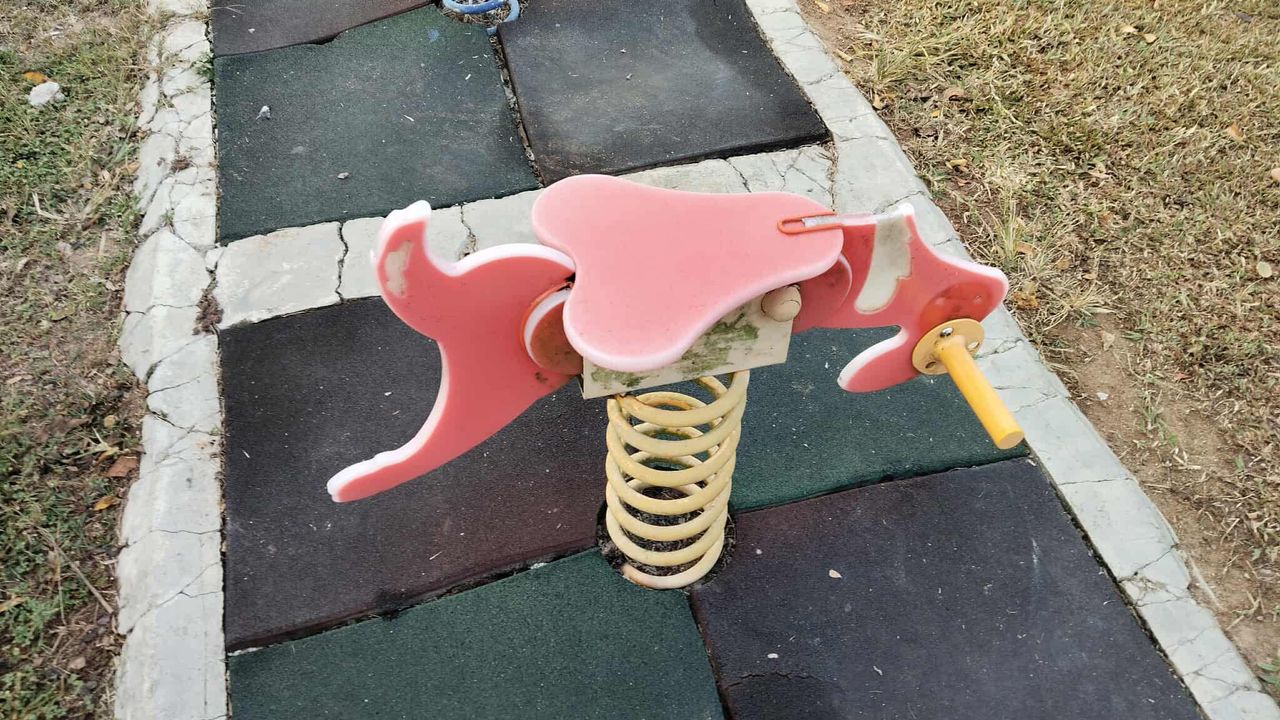 The playground located at the square is also largely damaged, and the benches provided are clearly broken and unusable.