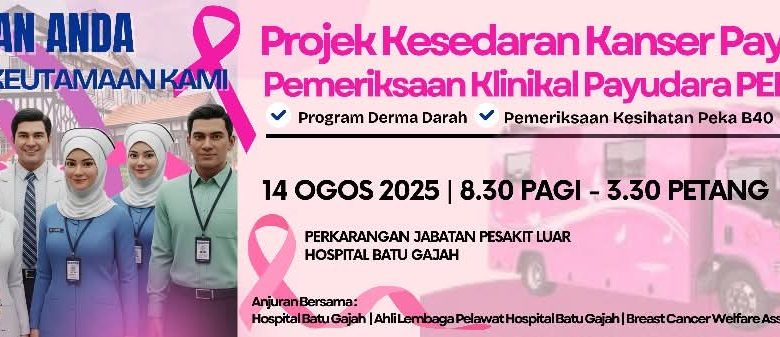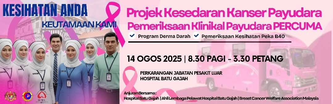Running from 8:30 AM to 3:30 PM, the program is jointly organized by Batu Gajah Hospital, the Hospital Visitors Board, and the Breast Cancer Welfare Association Malaysia (BCWA).