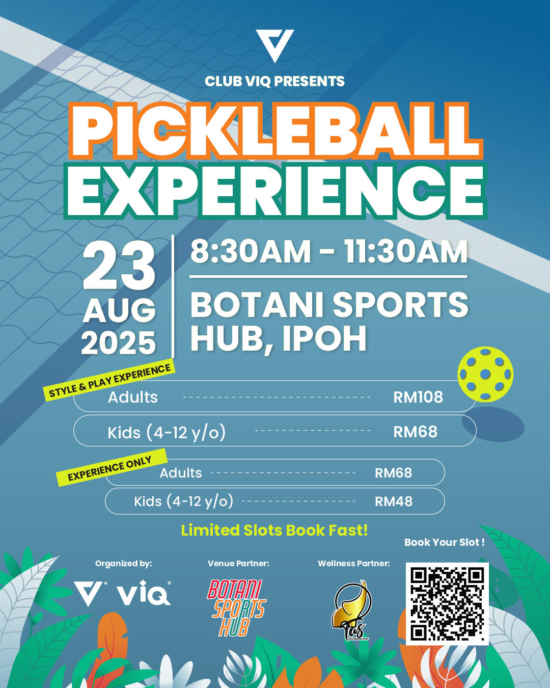 Calling all pickleball fans and those who have never held a paddle before! The pickleball buzz in Ipoh is getting bigger than ever, and you can join the fun next Saturday, 23rd August, at the brand-new Botani Sports Hub.