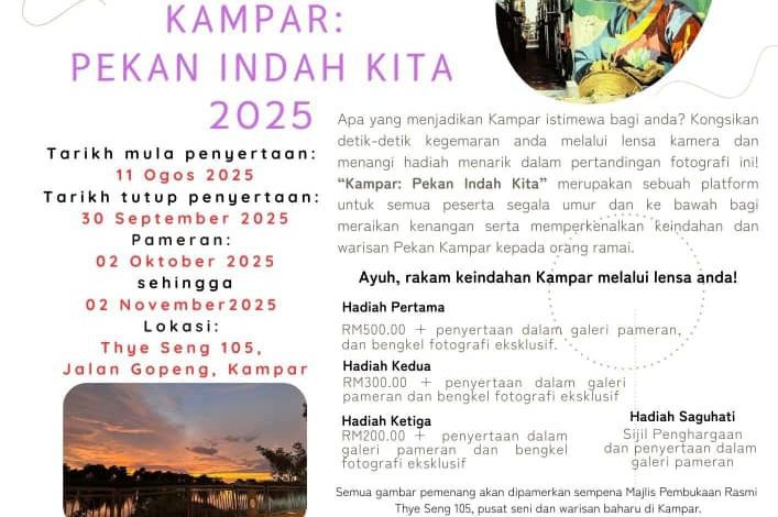 The public is invited to take part—not just to win prizes, but to celebrate the beauty and identity of Kampar through the art of photography.