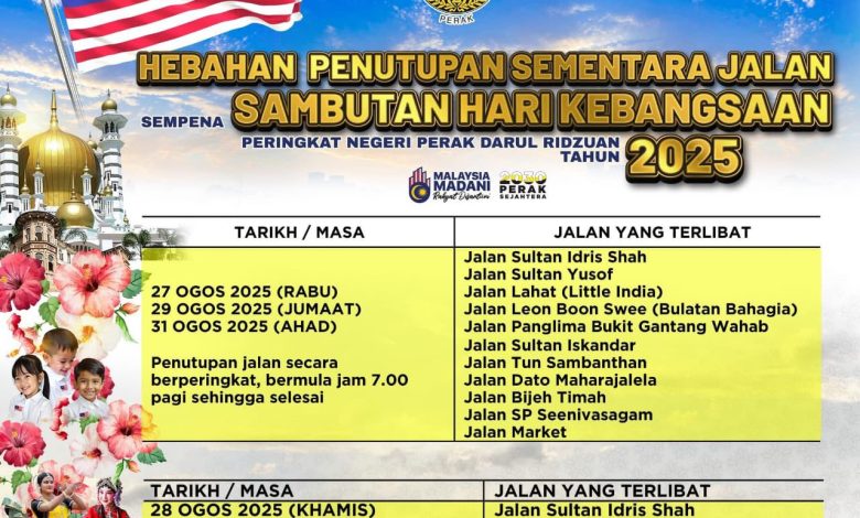 Temporary Road Closures for Perak State National Day 2025 Celebration