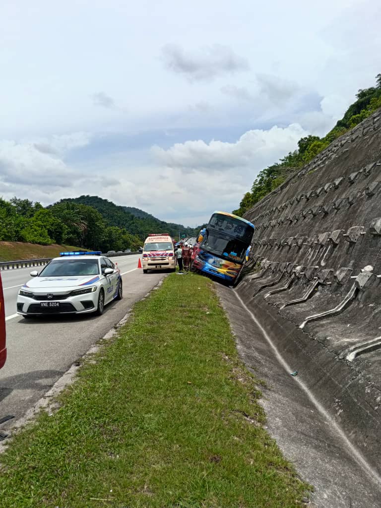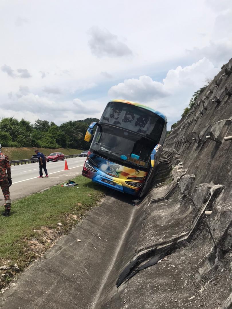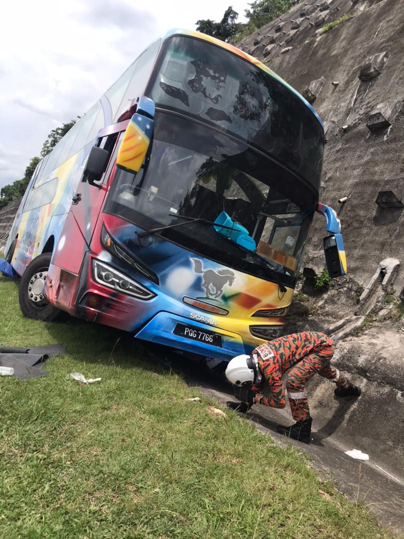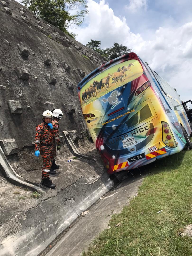 “Upon arrival at the scene, it was found that the express bus traveling from Melaka to Butterworth had skidded into a roadside drain along the highway.
