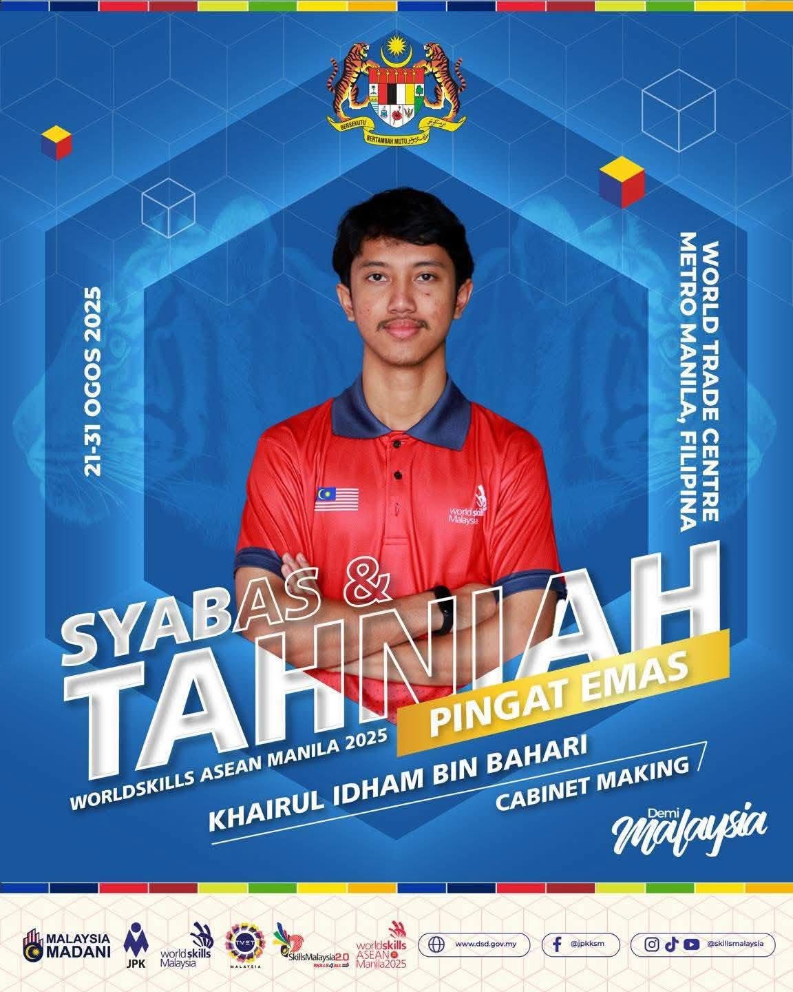 IPOH: A young man from Kampung Teluk Batu, Lenggong, Khairul Idham Bahari, was crowned champion at the WorldSkills ASEAN Manila 2025 in the Cabinet Making category, held recently in the Philippines.