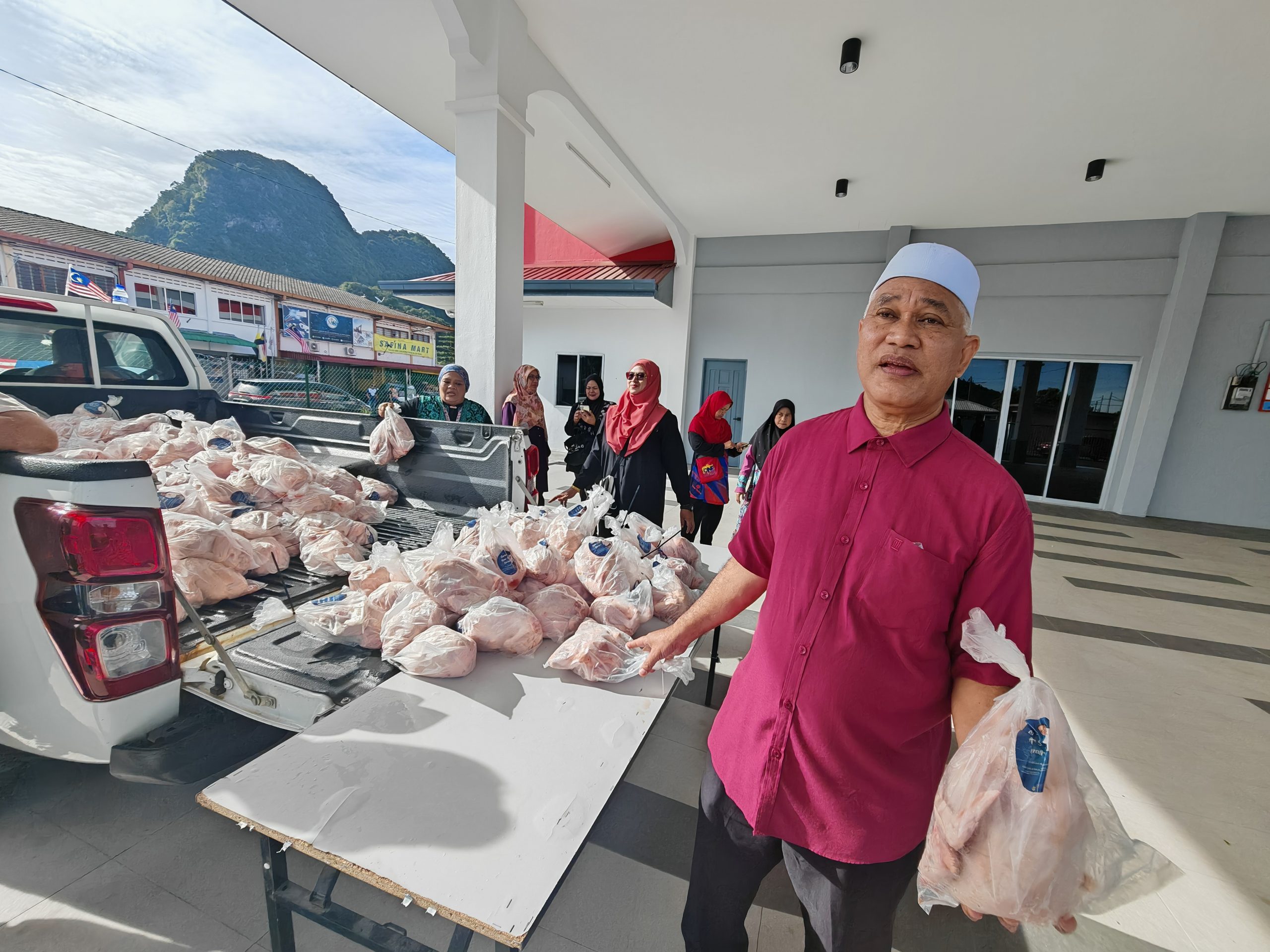IPOH: In less than an hour, 500 fresh chickens were distributed for free to the public at the Taman Perpaduan Community Hall today.