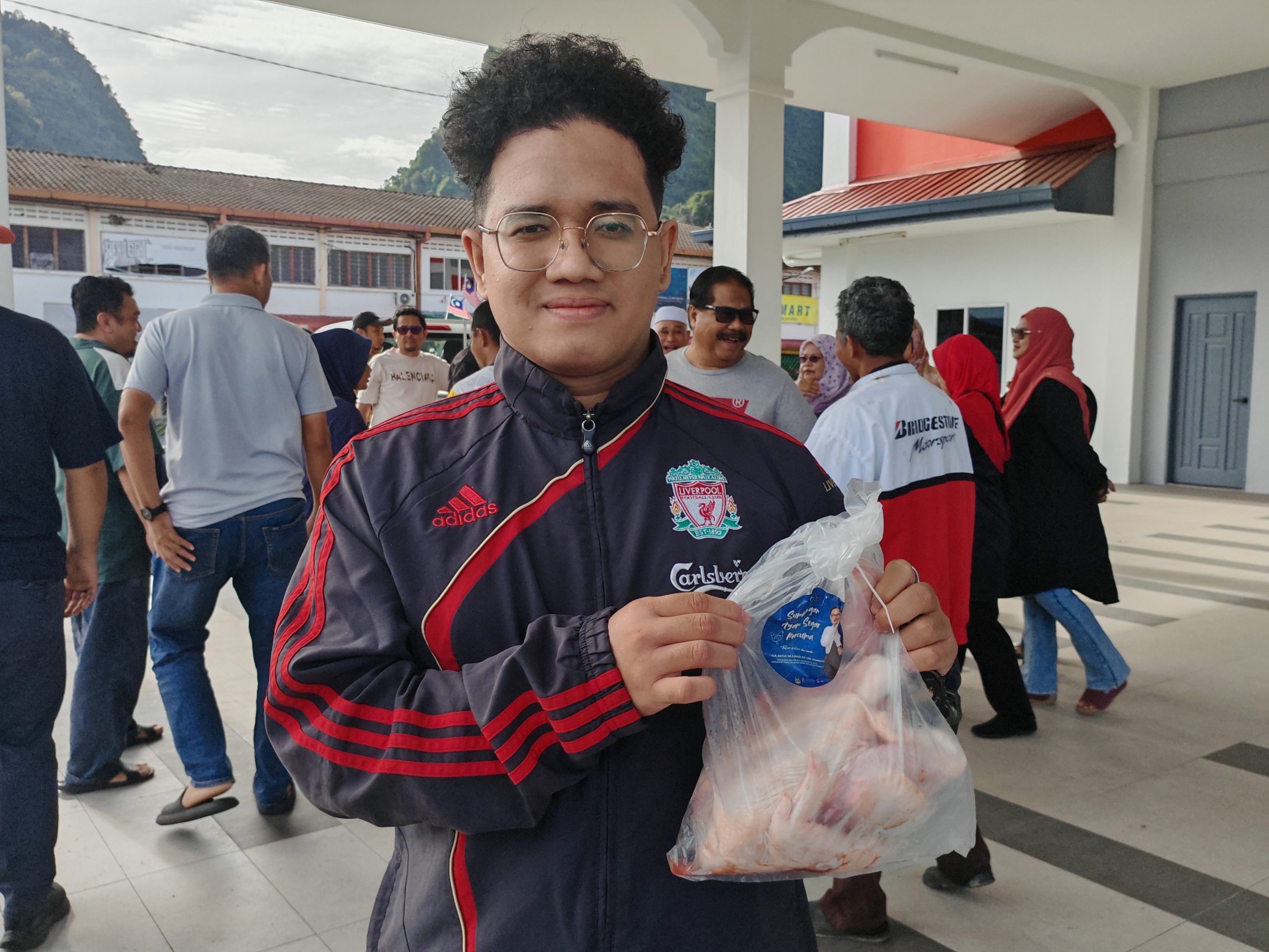“I found out about the distribution through a WhatsApp group, and I came today to get a free chicken. Alhamdulillah, my mom can cook chicken today,” said the university student, who is currently on semester break.