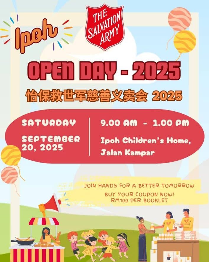 The event opens the doors for Ipoh citizens to discover what happens inside the Salvation Army homes, meet the people it serves, and share in a day of fun and giving.