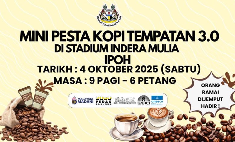 Visitors will also have the opportunity to sample various coffee flavors, purchase handicrafts from local entrepreneurs at Lorong Seni @ Lorong Panglima, Ipoh, and participate in a lucky draw.