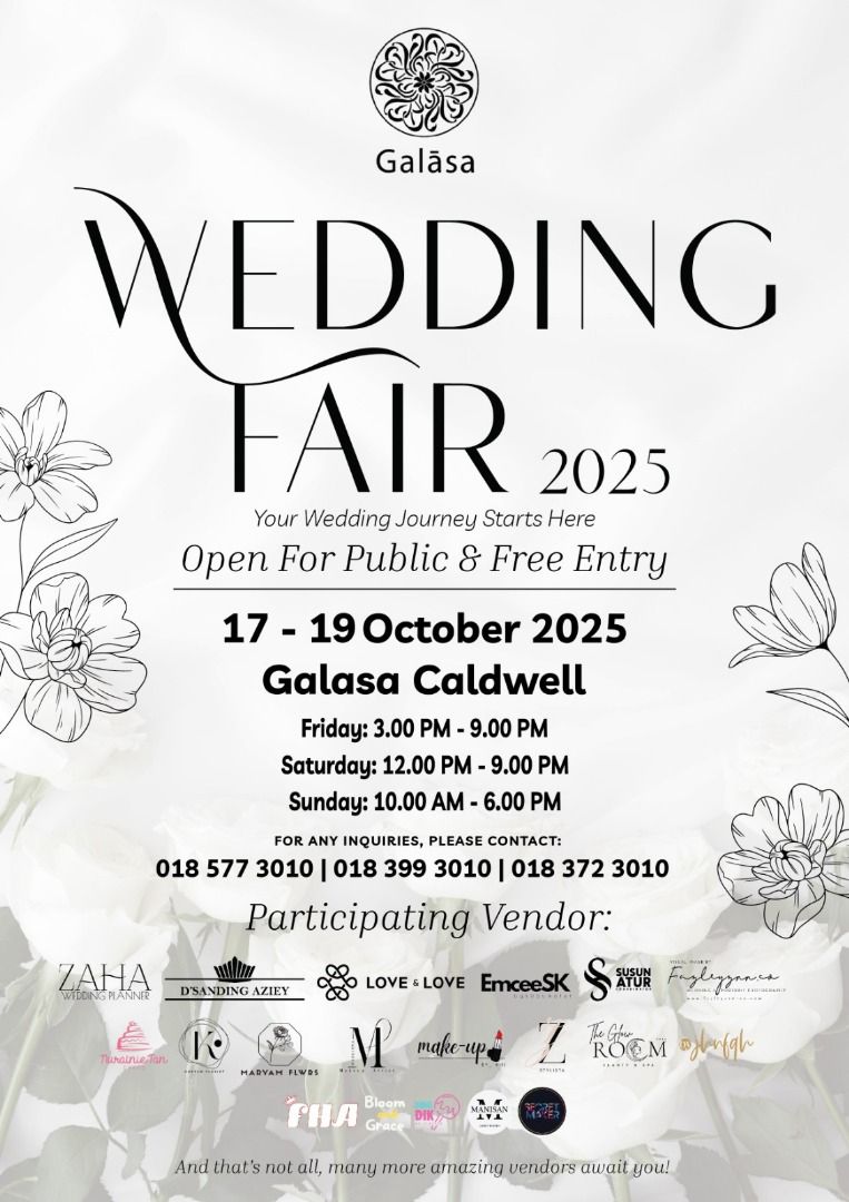 The event, to be held at the modern Galasa Ipoh event space, will showcase a wide range of wedding-related services for couples planning their special day.