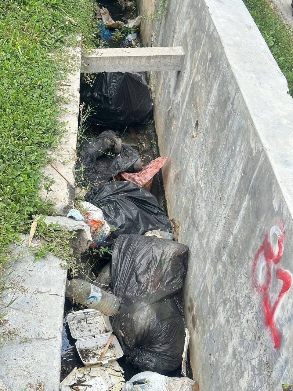 The situation not only involves piles of trash but also foul smells due to blocked drainage, which has become a persistent problem for local residents.