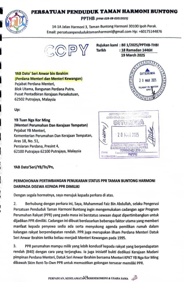 The memorandum, submitted on March 20, 2025, represents the collective voice of low-income (B40) families who see RTO as the only definitive path to generational stability.