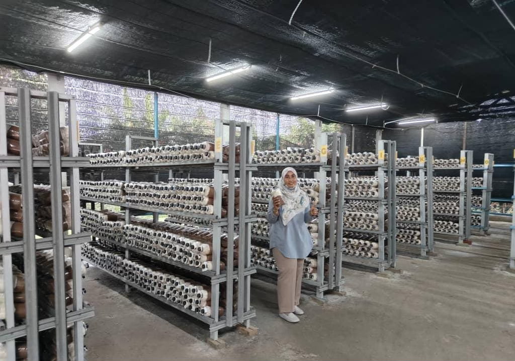 The farm produces its own mushroom blocks from organic materials such as rubberwood sawdust and rice bran. Fazila has also improved efficiency with automatic misting, bagging, and steaming systems that ensure consistent quality from cultivation to harvest.