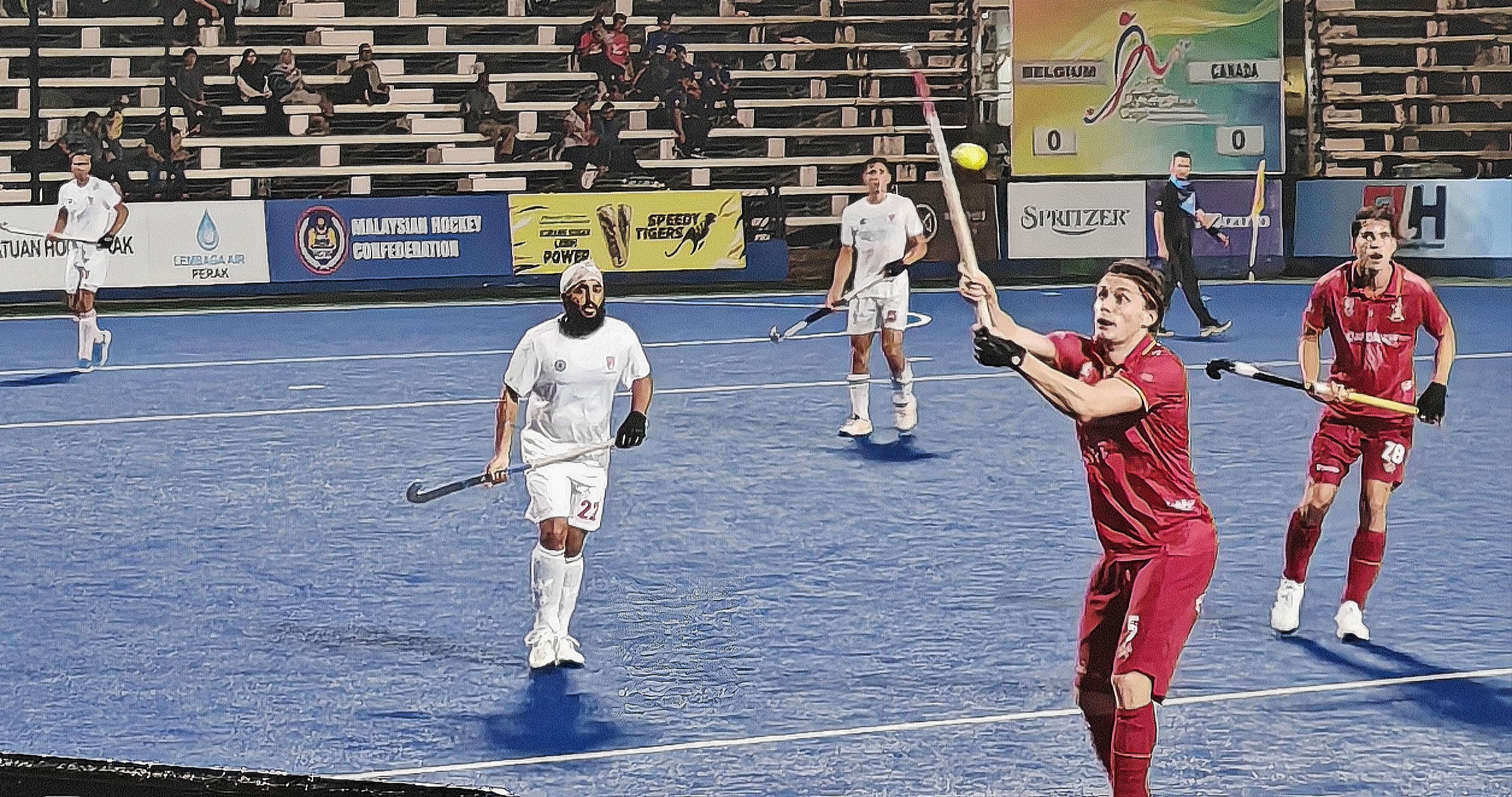 Action from the tightly contested match between Canada (in white) and Belgium (in red) which ended in a 1-1 draw on the opening day of the 31st Sultan Azlan Shah Cup.