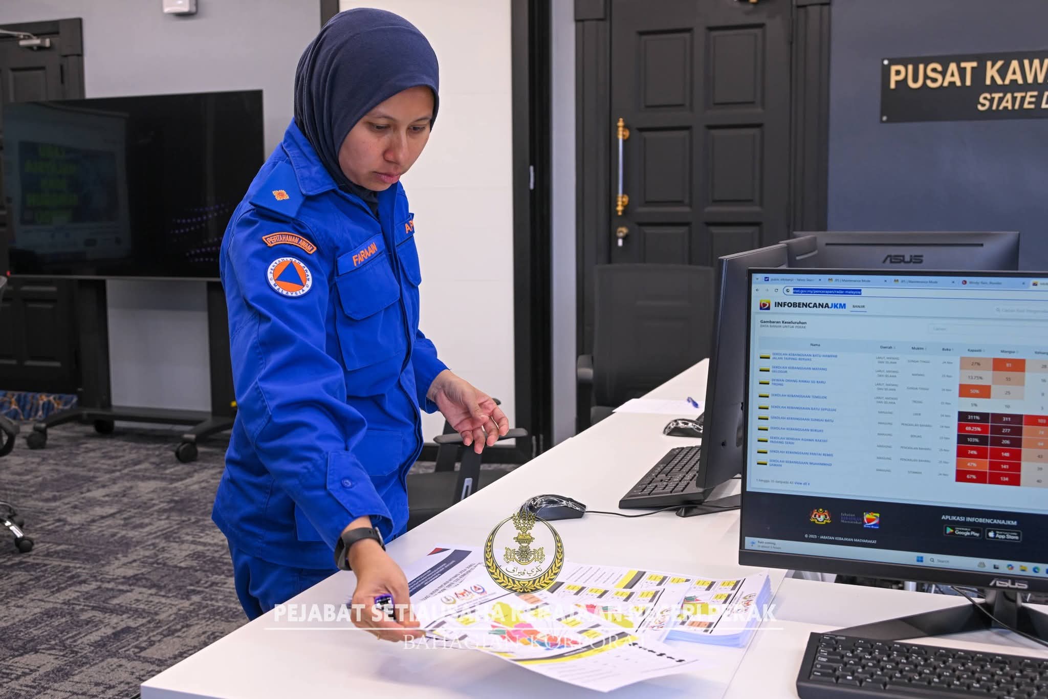 The Perak SDCC functions as the state’s main disaster operations coordination centre, operating under the National Disaster Management Agency (NADMA) and coordinated through the State Disaster Management Committee (JPBN).