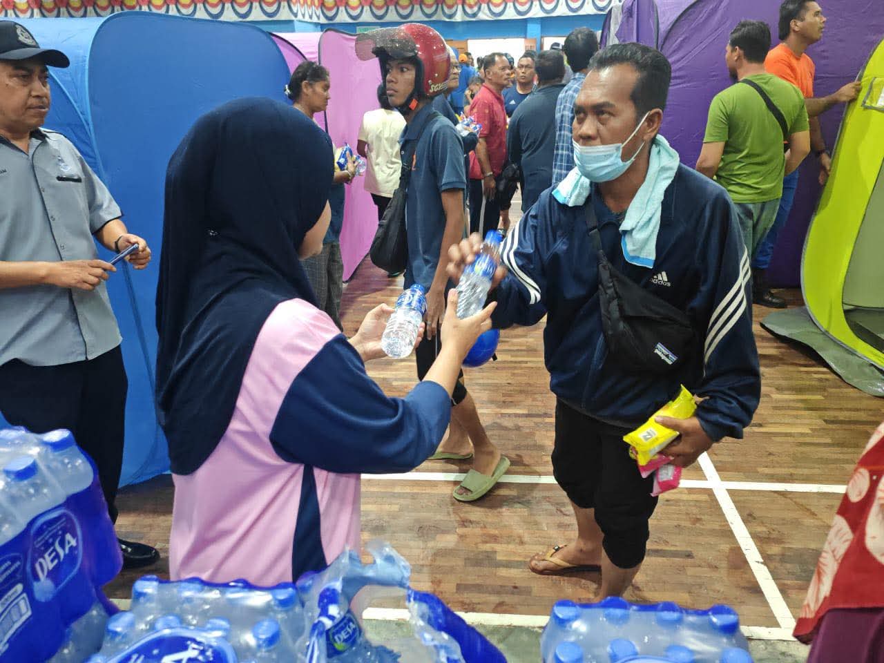 Chairman of PERKEP IPD Hilir Perak, Wan Shamsuria Wan Idris, together with PERKEP members, conducted a welfare visit to the Temporary Evacuation Centre (PPS) at IPD Hilir Perak to reach out to the victims sheltered there.