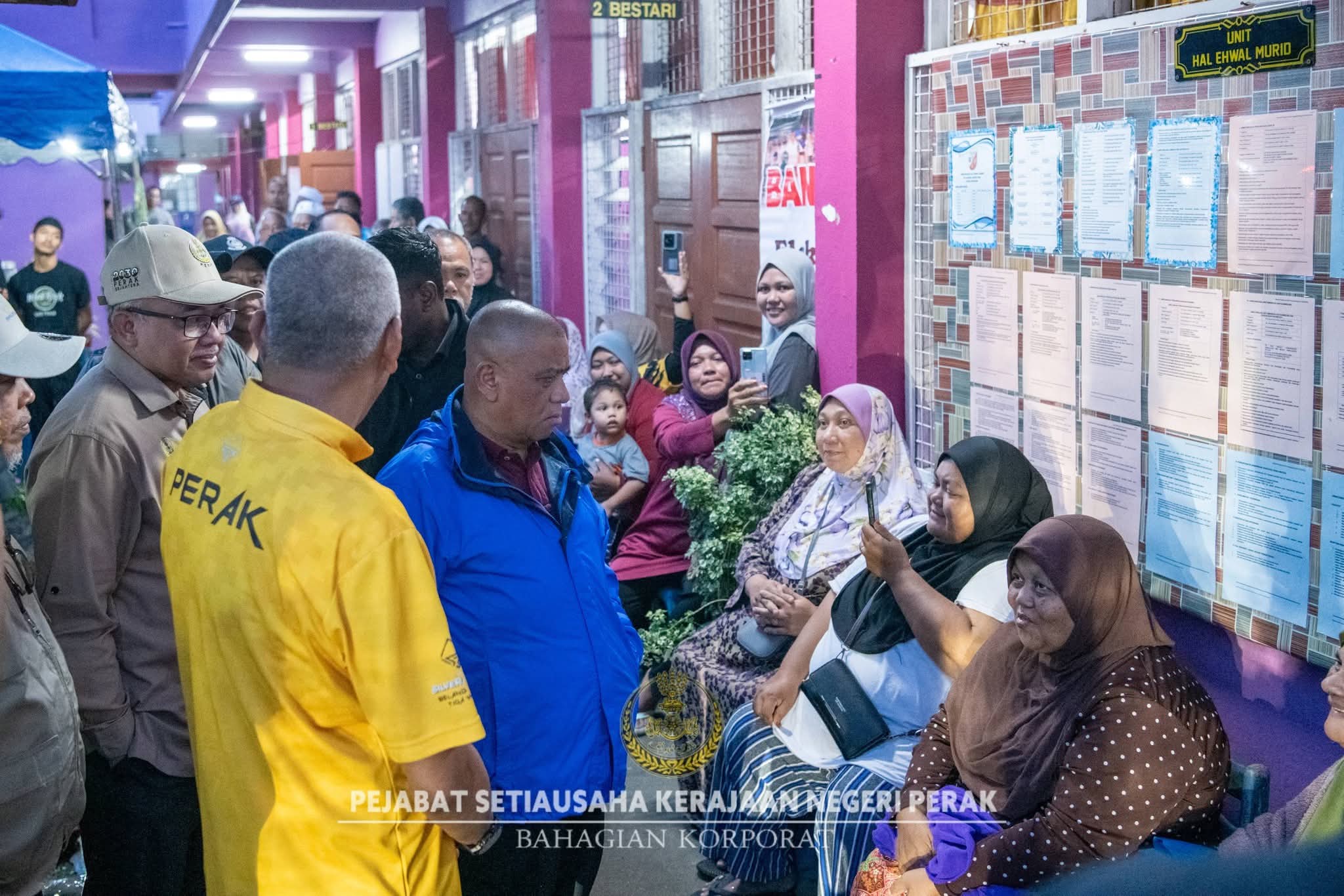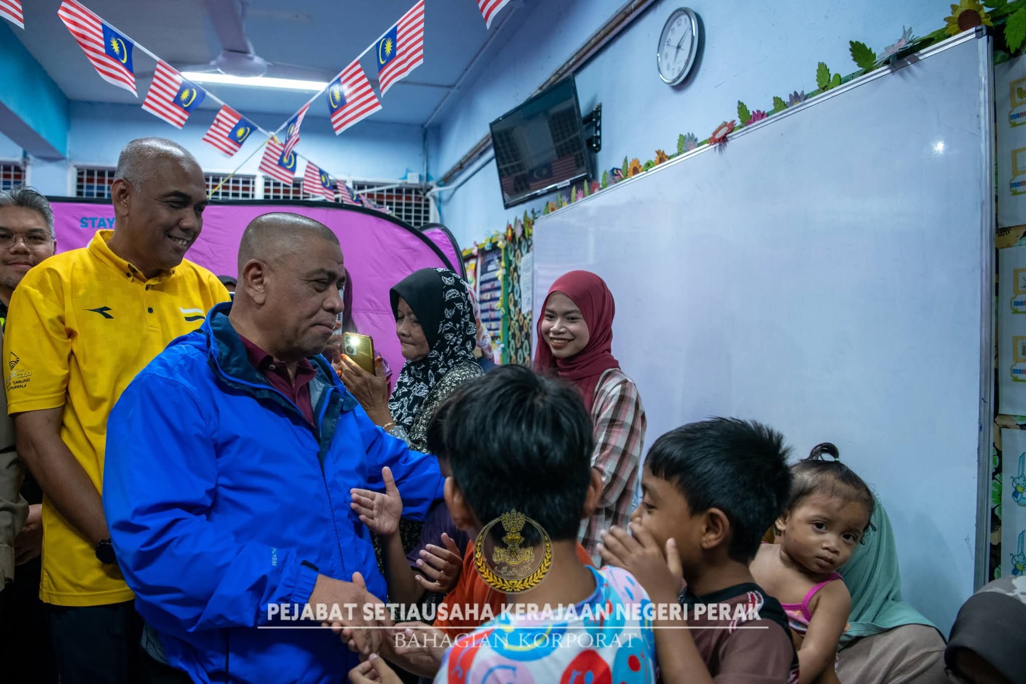 According to a statement from the Office of the Perak State Secretary, Saarani began his visit at the PPS SK Titi Gantung, which shelters 116 families involving 456 victims, before continuing to the PPS Layang-Layang Kiri, which houses 52 families involving 184 victims.