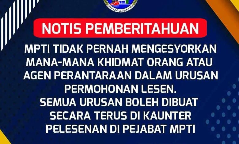 MPTI clarified that all matters related to licence applications can be completed directly at the licensing counter without any extra charges.