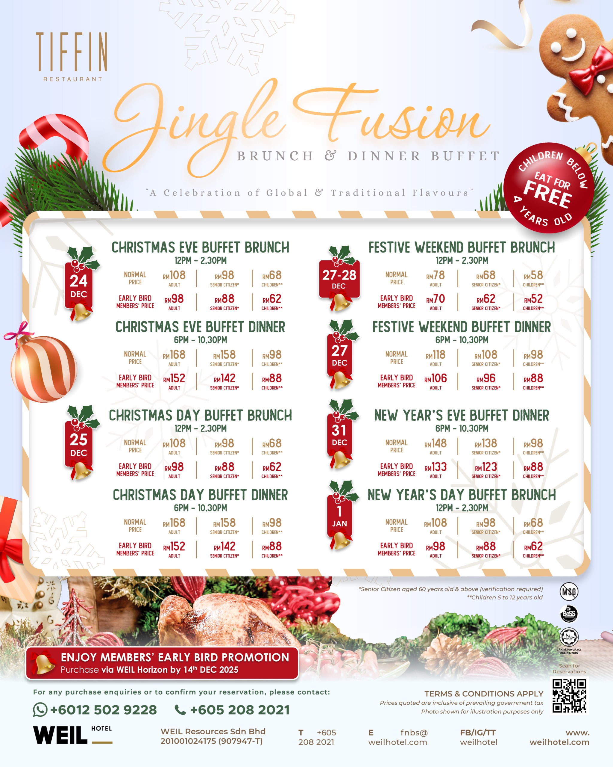 IPOH – The festive season at Tiffin Restaurant, WEIL Hotel Ipoh is set to be even more memorable with the launch of the Jingle Fusion Brunch & Dinner Buffet, running from 24 December 2025 to 1 January 2026.