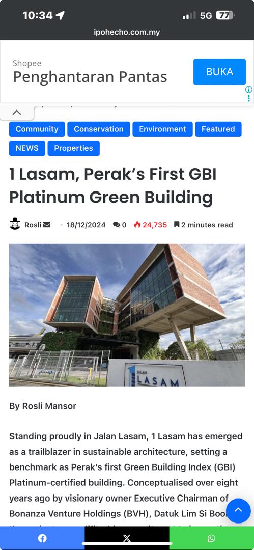 Rosli, who also authored the winning report, clinched third place with his article titled “1 Lasam, Perak’s First GBI Platinum Green Building”, which spotlighted the achievements of an iconic Ipoh building in the field of sustainable architecture.