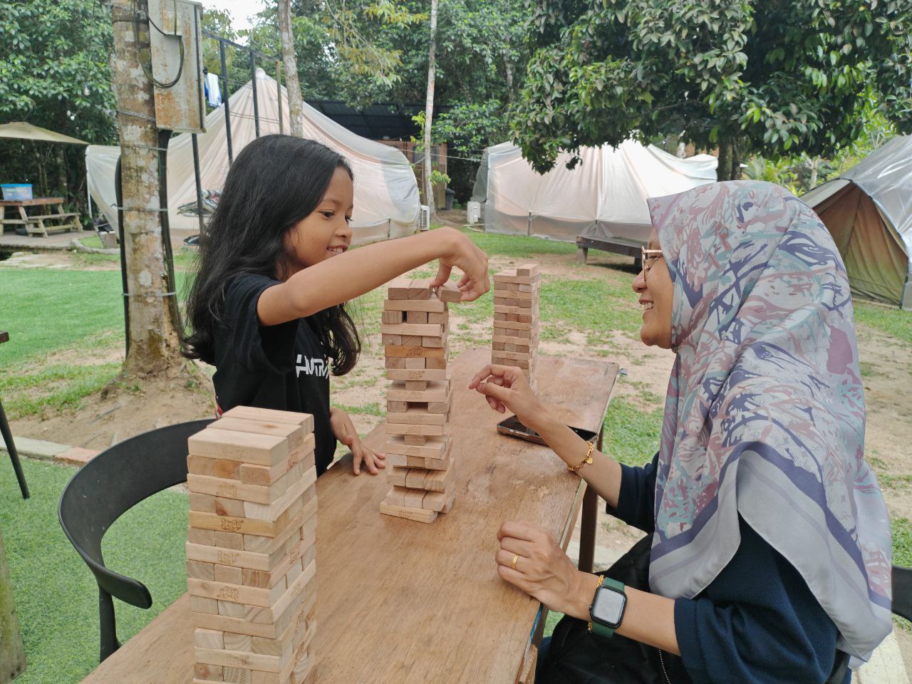 Accommodation options at Tingkat Valley cater to various preferences and budgets, including the Senduduk Tent for couples, Kemboja and Teratai Tents for families or friends, and the Keladi Suite for larger groups.