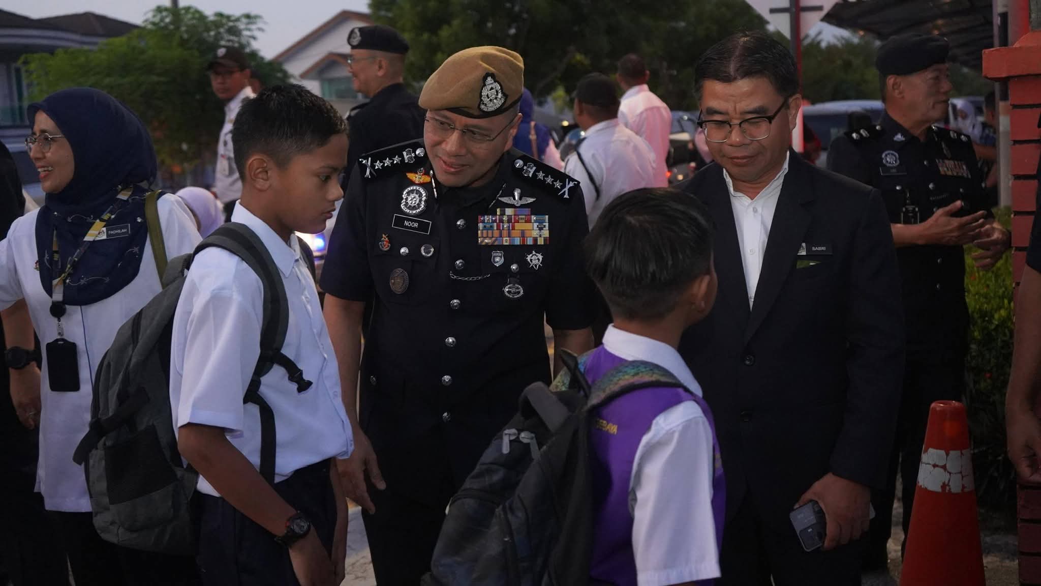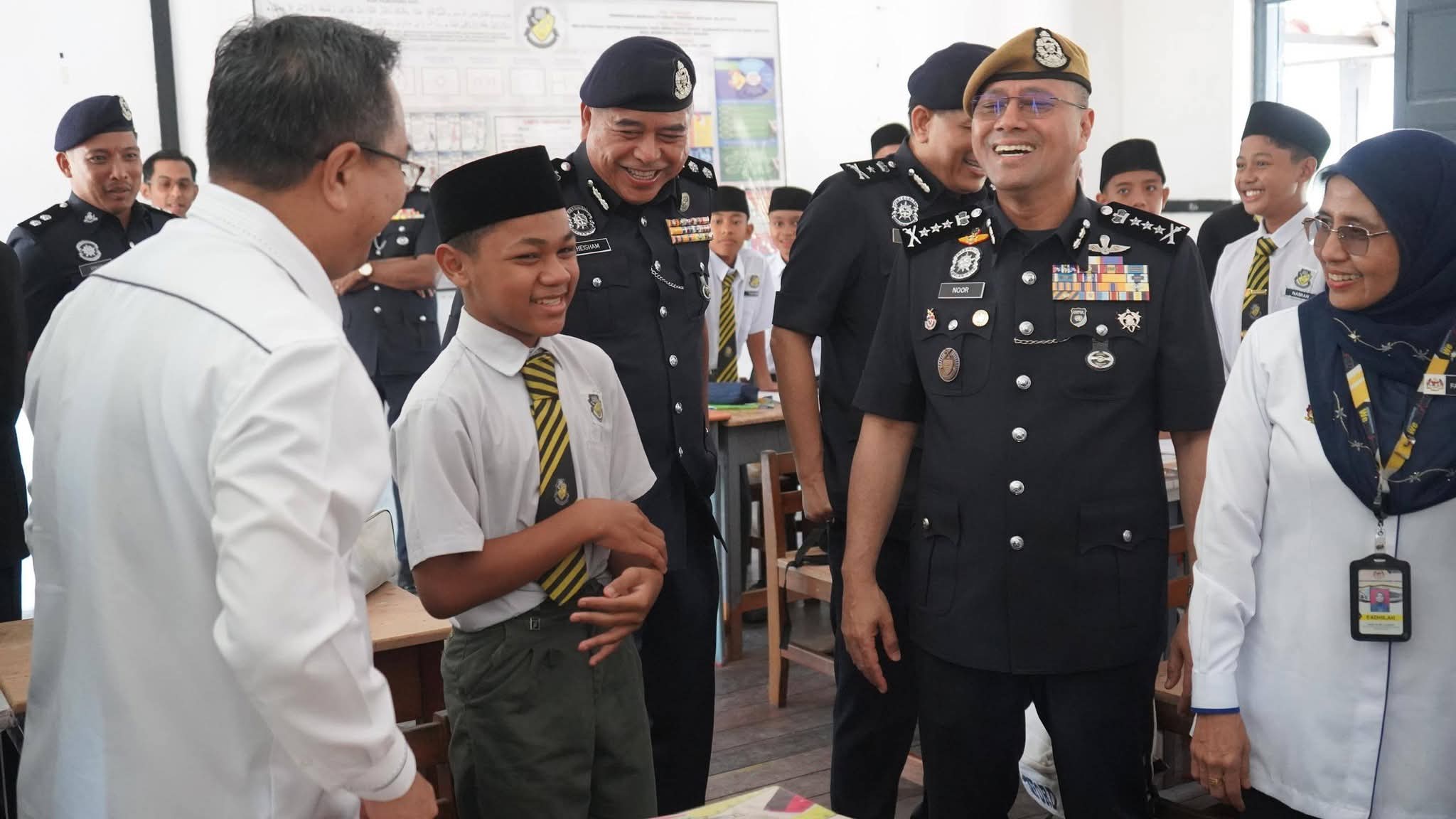KUALA KANGSAR: The start of the new school session was especially meaningful for students at two schools in this district with a visit from the Perak Police Chief, Dato’ Noor Hisam Nordin.