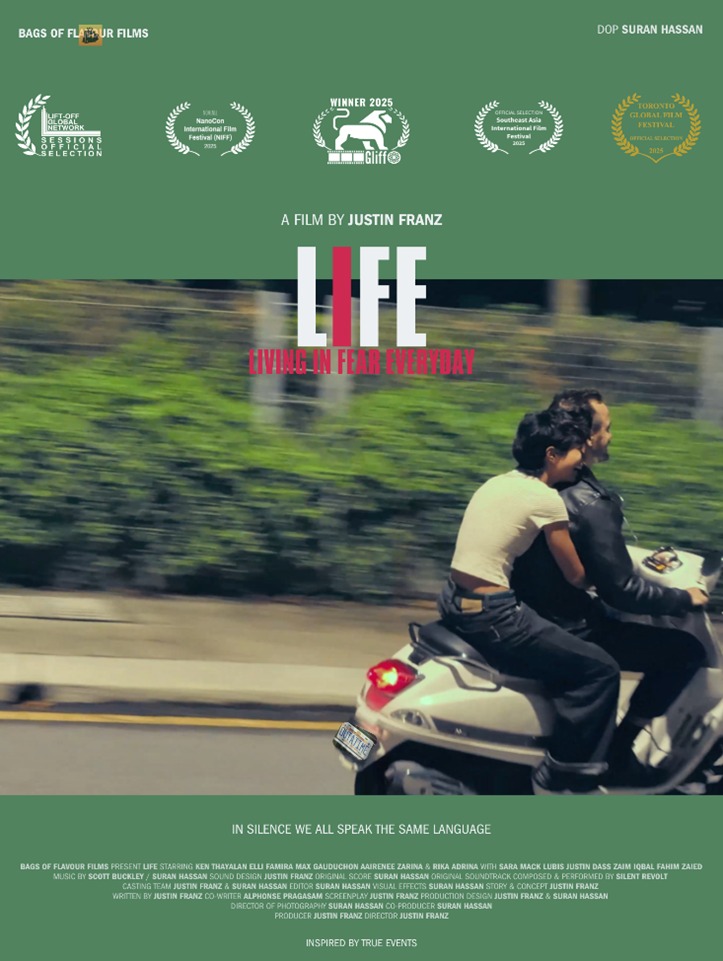 L.I.F.E. – Living In Fear Everyday is a Malaysian silent short created far from traditional production pathways. The film has since found its way onto international festival screens in the United Kingdom, United States, Thailand, India and Canada, earning selections and awards since late 2025.