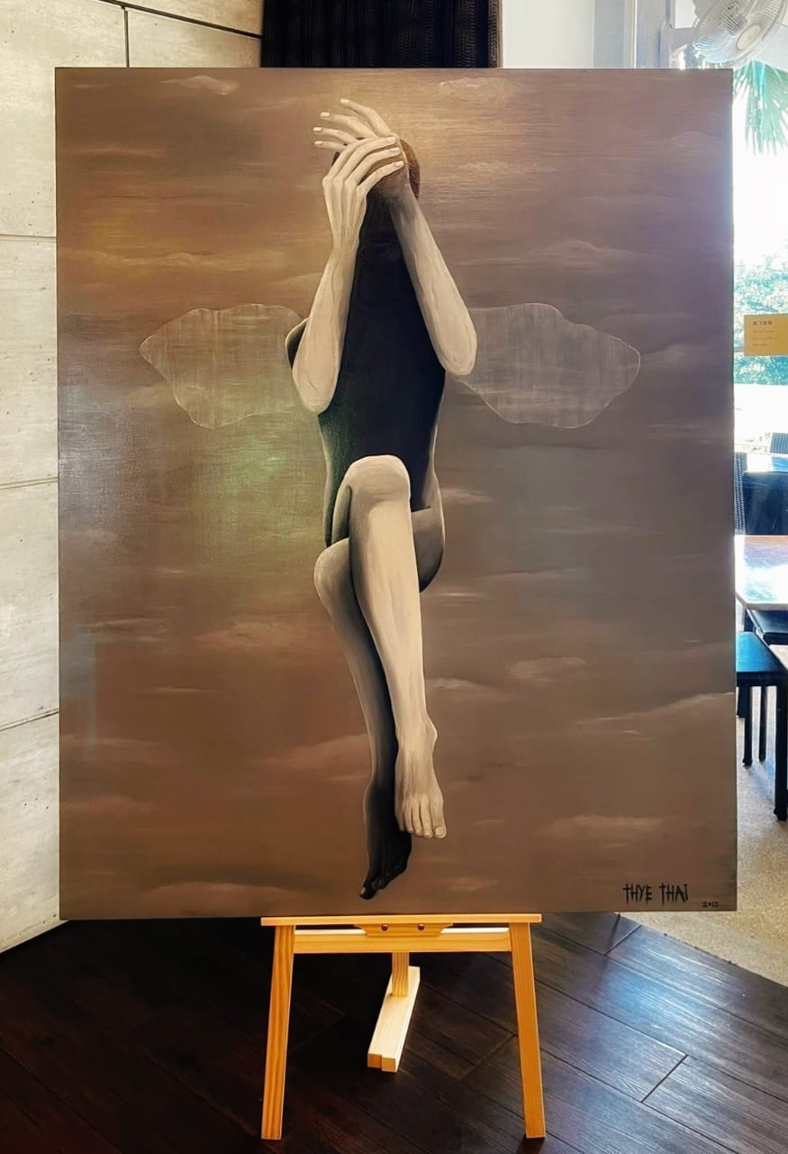 Inspiration, she says, comes from the world around her — from contemporary society, lived experiences, and quiet observations. Each decision within a painting is deliberate, from technique and materials to style and subject matter.
