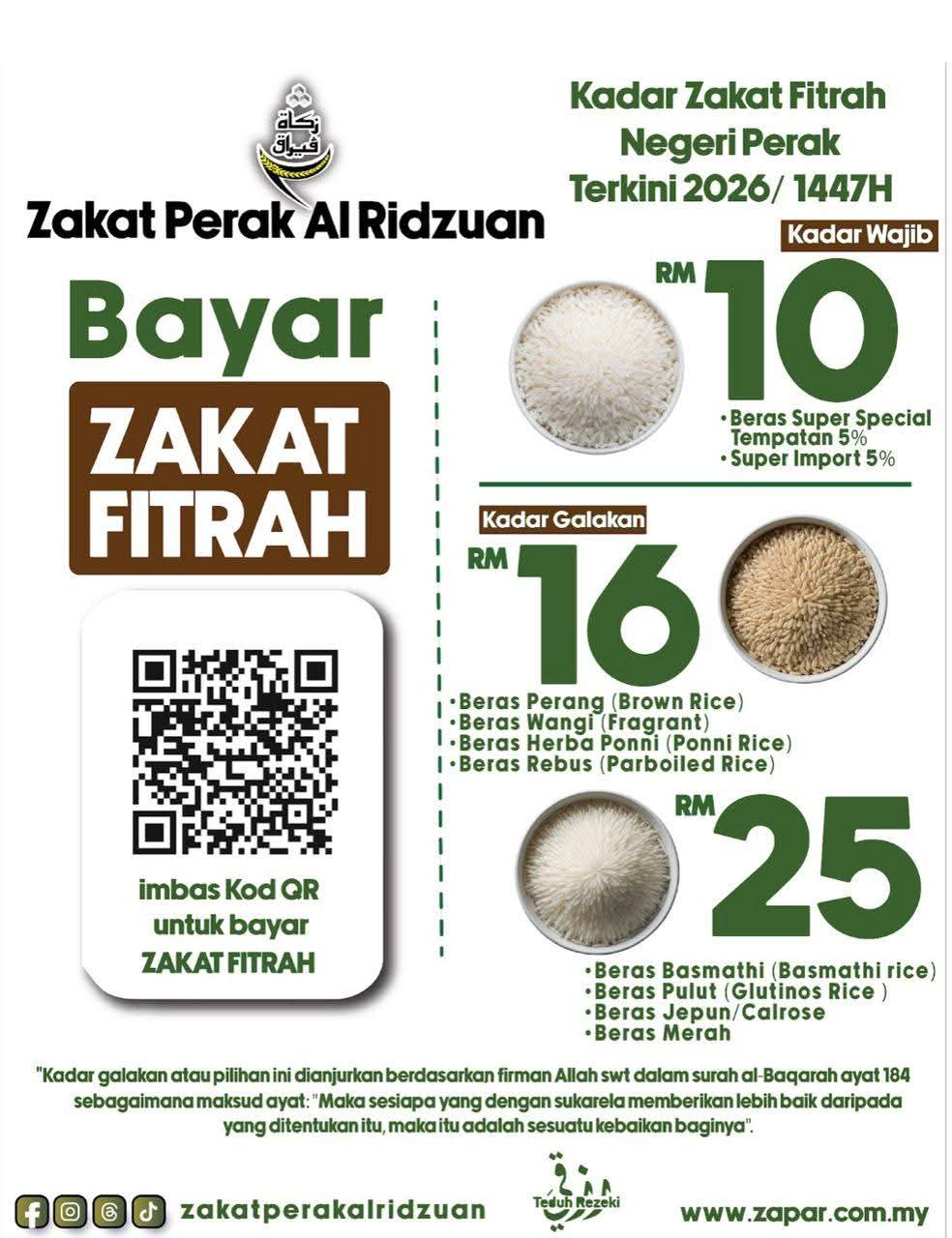 He was speaking at a press conference during the announcement of the Zakat Fitrah Rate for 1447 Hijrah, corresponding to 2026, held at the Zakat Perak Al-Ridzuan headquarters here.