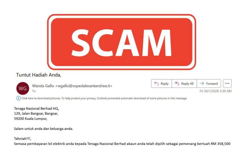IPOH – Tenaga Nasional Berhad (TNB) has issued a warning to the public regarding the circulation of fake emails claiming prize claims, which misuse the company’s name to trick recipients into disclosing personal information.