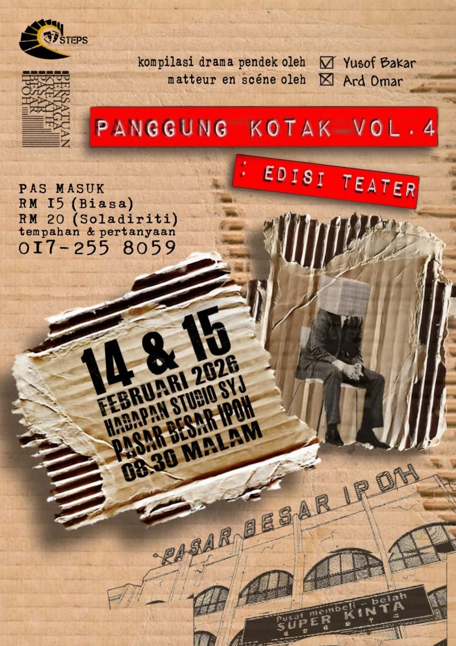 IPOH – The alternative theatre showcase, Panggung Kotak Vol. 4: Edisi Teater, is set to entertain audiences over two nights on February 14 and 15 at Studio SYJ, Pasar Besar Ipoh, starting at 8.30 pm.