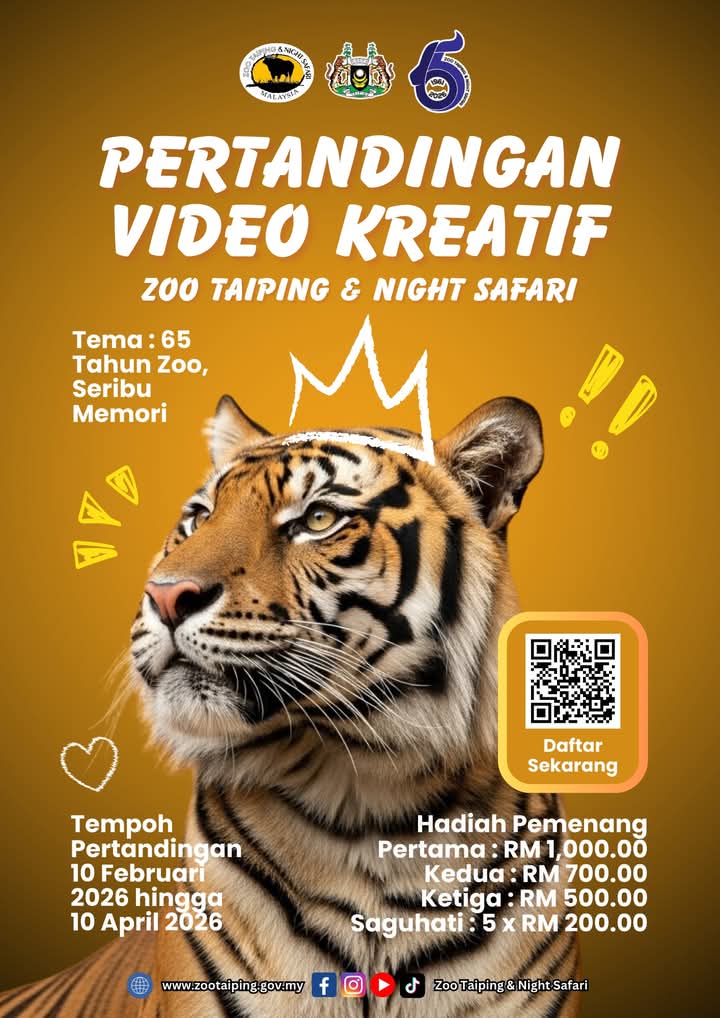 TAIPING: In conjunction with the 65th anniversary celebration of Zoo Taiping Night Safari, the public is invited to take part in a Creative Video Competition themed “65 Years of the Zoo, A Thousand Memories.”
