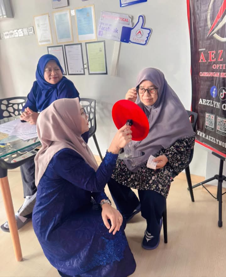 LUMUT: A total of 100 recipients benefited from the Free Eye Screening and Free Glasses Contribution Programme, organised through a collaboration between Aezlyn Optical and the Pangkor State Assembly Service Centre.