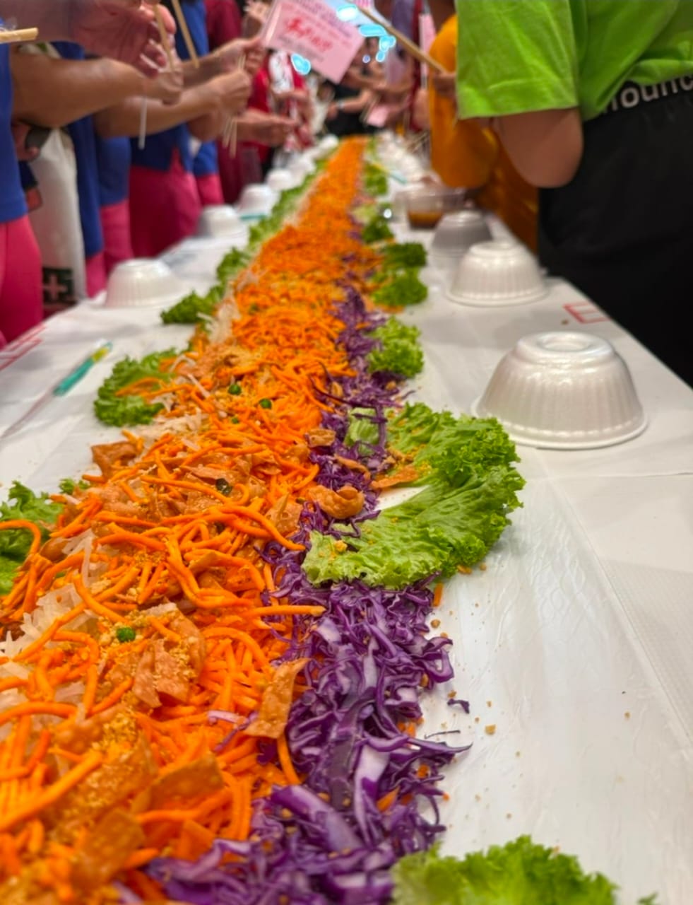 Participants used chopsticks to toss the ingredients high while shouting auspicious wishes for success, prosperity, and happiness.