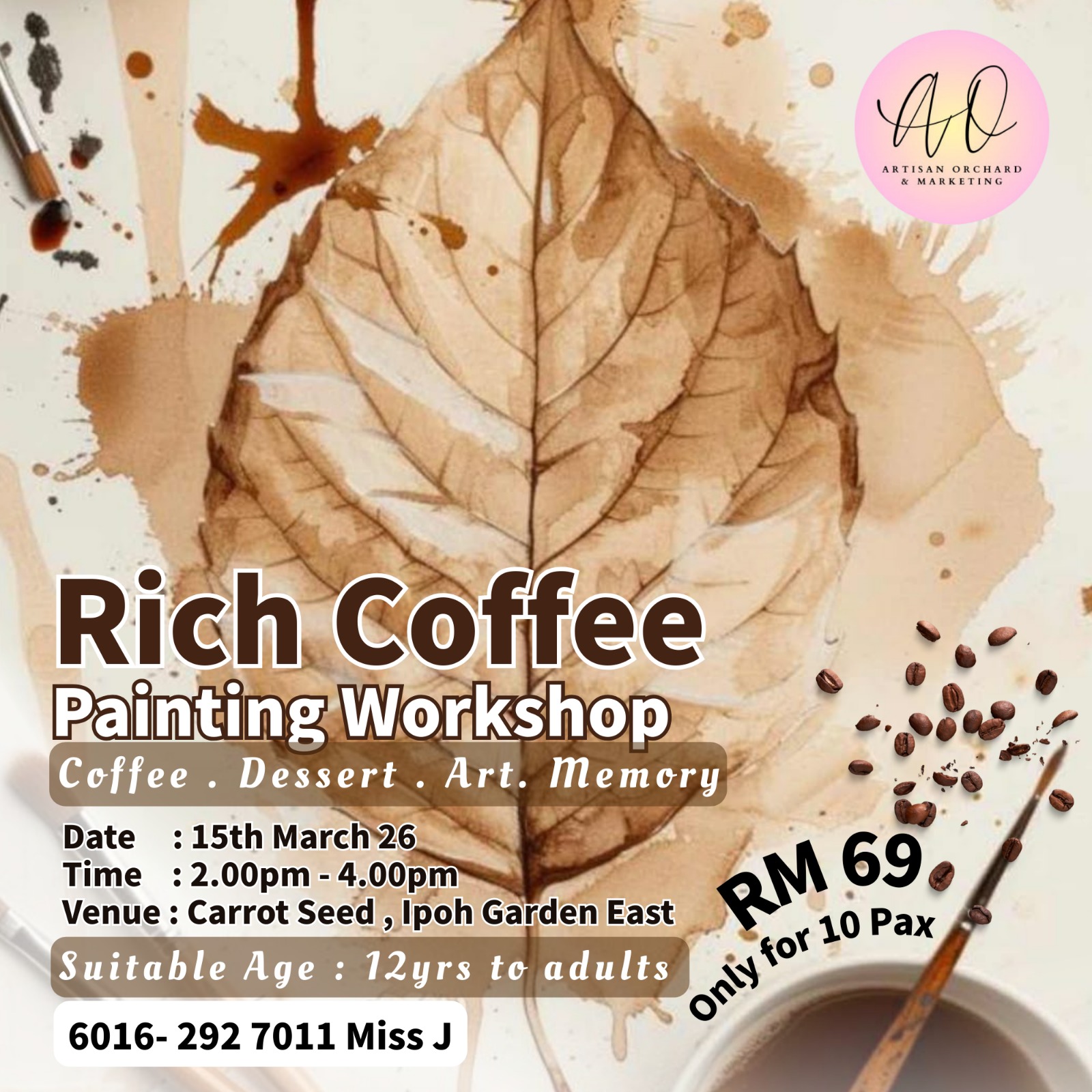 In the rush of the modern work week, finding a moment to simply breathe can feel like a luxury. On 15 March, from 2 pm to 4 pm, the Coffee Painting Workshop will be held at Carrot Seed in Ipoh Garden East, fusing art and coffee.