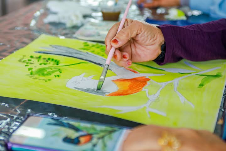 The lively and interactive atmosphere reflected the participants’ enthusiasm as they expressed their creativity, with some choosing to paint brightly coloured flowers while others featured fauna elements symbolising peace and freedom.