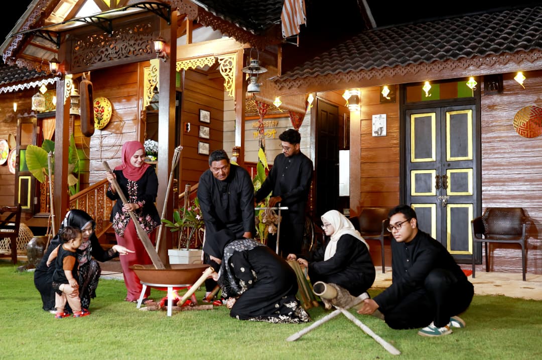 Background decorations themed around ketupat, oil lamps and traditional elements not only enhance the festive Aidilfitri atmosphere but also provide a consistent aesthetic touch.