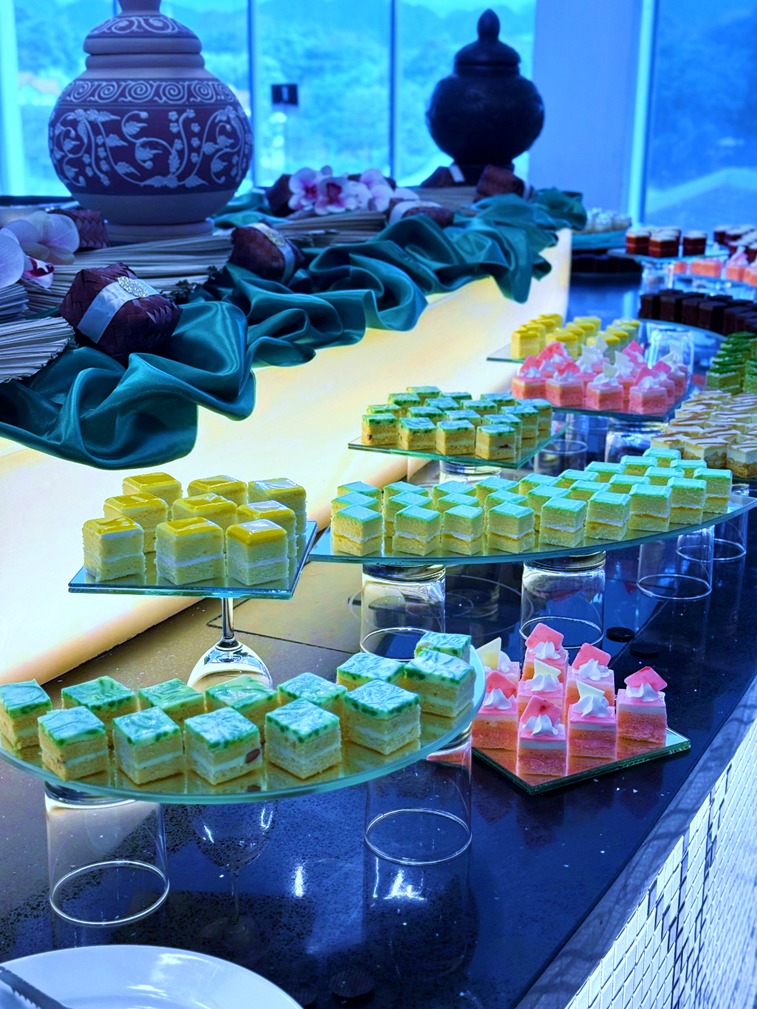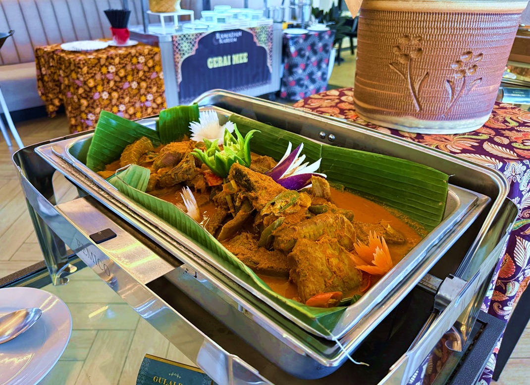 Among the highlights are the hotel’s signature curry fish head and a roasted lamb carving station, alongside dishes such as ikan masak tempoyak, daging salai cili api, cucur udang, and udang lemak gulai nenas. Appetisers, main courses, and desserts complete the offering, giving diners a wide range to enjoy each evening.