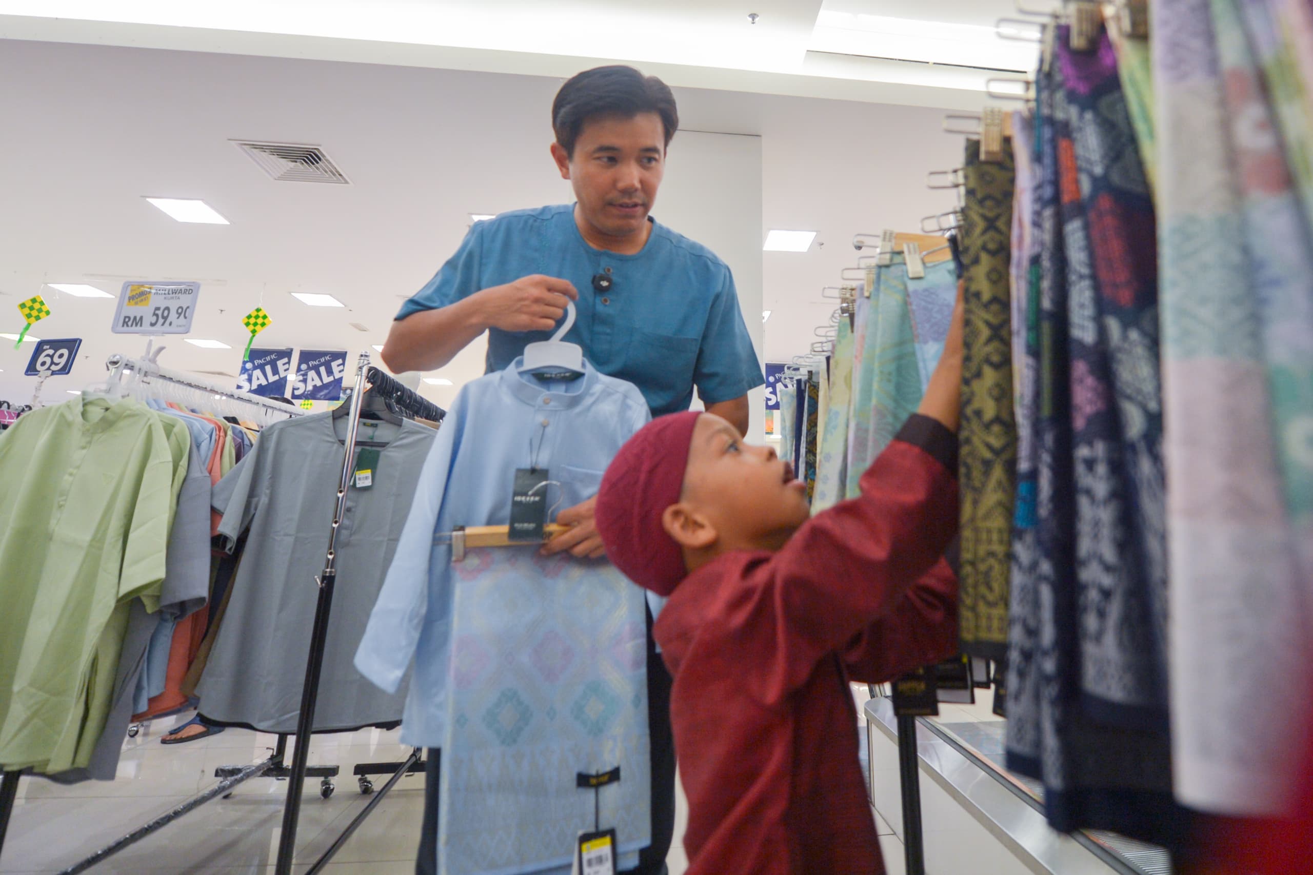 Neow said that witnessing the children’s excitement and cheerful expressions while they chose clothes for the upcoming Aidilfitri celebration brought him a sense of joy.