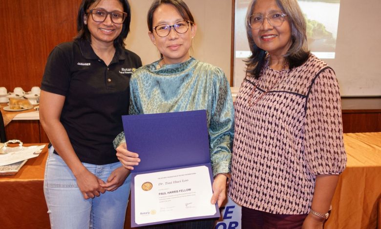 The Rotary Club of Greentown honoured psychiatrist Dr. Vicky Loo Tsui Huei with the prestigious Paul Harris Fellow recognition, Rotary’s well-known recognition for individuals whose service reflects the ideals of Service Above Self, during the club’s regular meeting held at the Royal Ipoh Club on 9 March.