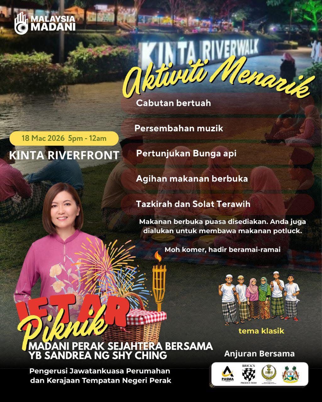 Perak Housing and Local Government Committee chairman Sandrea Ng said a host of exciting activities awaits the public, including a lucky draw, musical performances, distribution of breaking-of-fast meals, and a fireworks display.