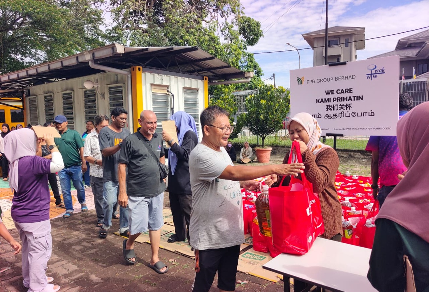 By mid-morning, families had begun arriving to collect the supplies. In total, 300 B40 families from the surrounding Buntong area received dry food assistance, helping households prepare for the festive season.