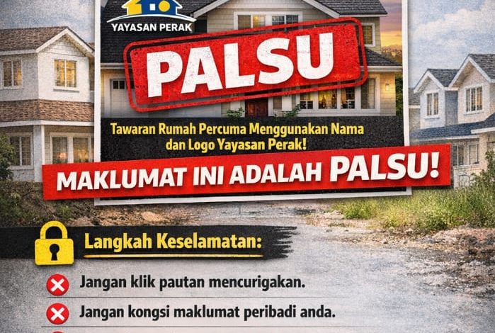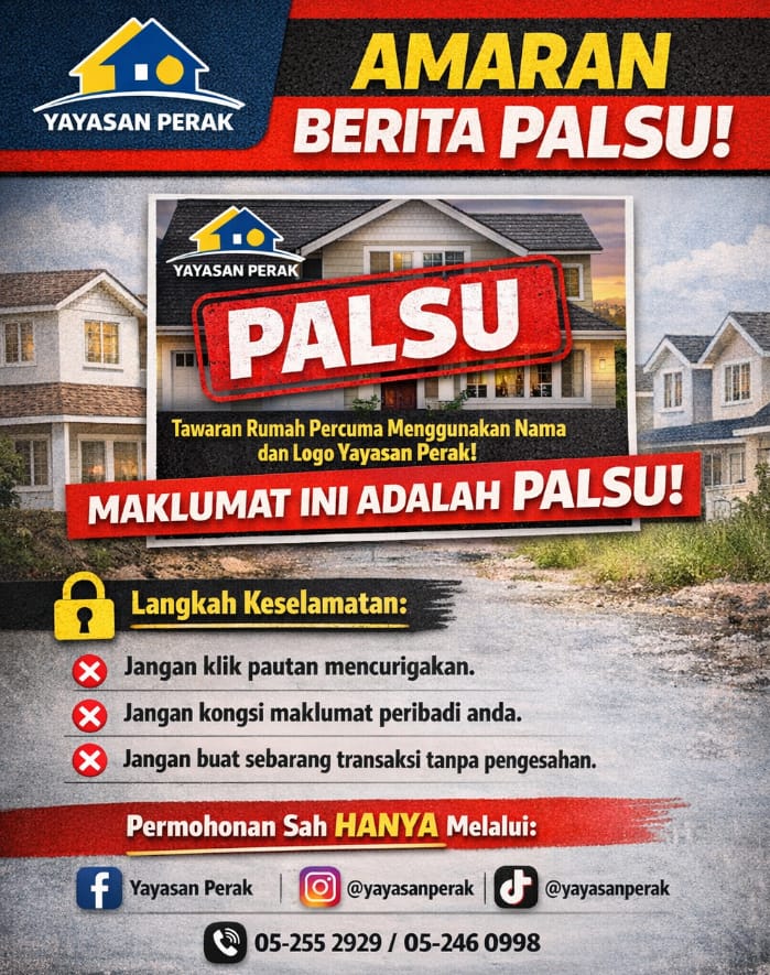 IPOH: Yayasan Perak has detected the spread of false information on social media regarding a free housing assistance offer using its name and logo.