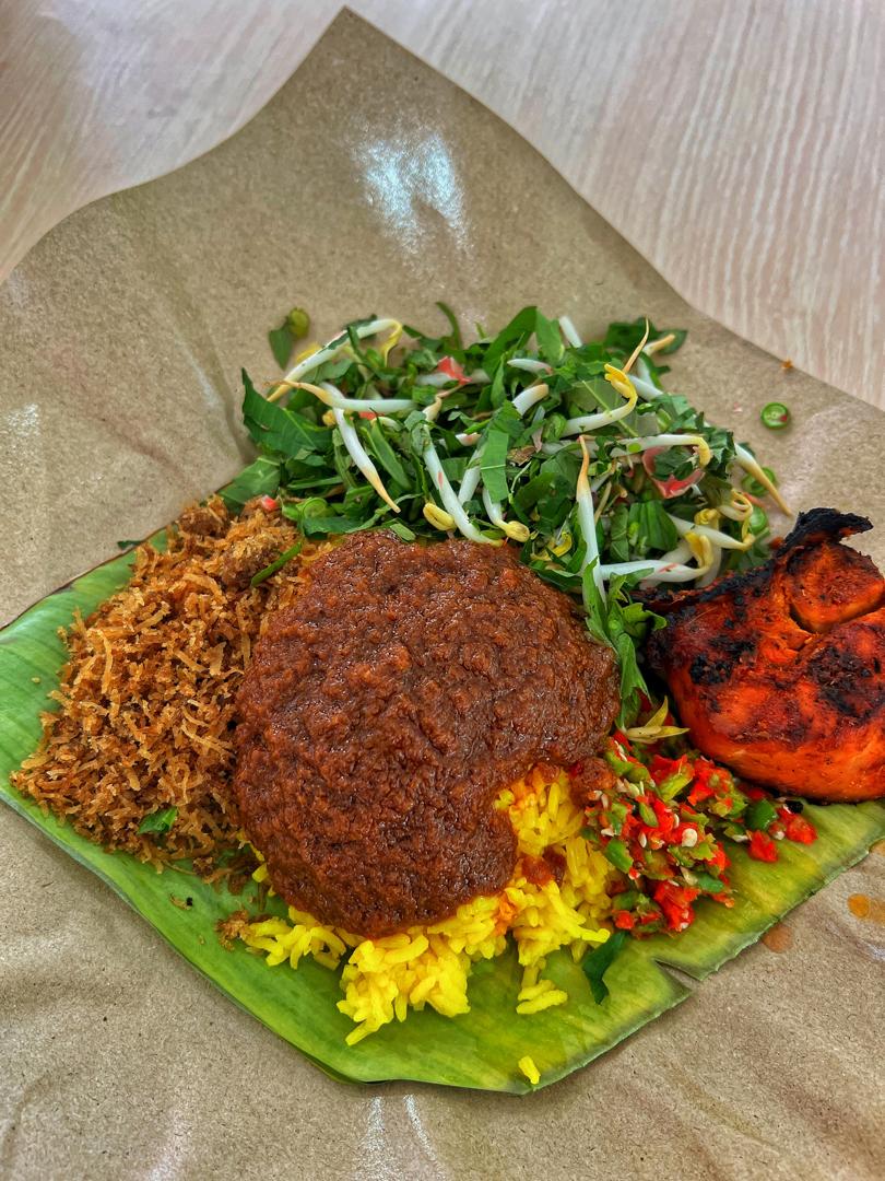 The uniqueness of the dish lies not only in its colour, but also in its well-balanced and appetising combination of flavours. The fragrant yellow rice is served with crispy spiced fried chicken, fresh ulam, aromatic spicy sambal, and fried grated coconut that further enhances its appeal.