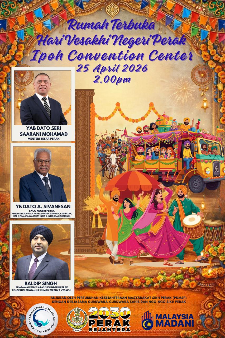 Attending the event will be YAB Dato Seri Saarani Mohamad, the Menteri Besar of Perak. YB Dato A. Sivanesan, Exco of Perak State, Chairman of the Human Resources, Health, Indian Community Affairs, and National Integration Committee. And also Baldip Singh, Perak State Sikh Coordination Officer and Vesakh Open House Organising Chairman.